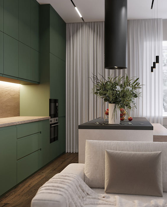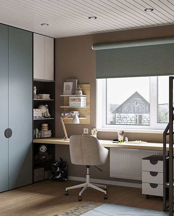 Очень популярный и оправданный приём в дизайне интерьеров, когда корпусная мебель реализуется впритык к потолку. Это практично с точки зрения того, что пыль не будет собираться на верхних поверхностях мебели, добавляет и увеличивает системы…
