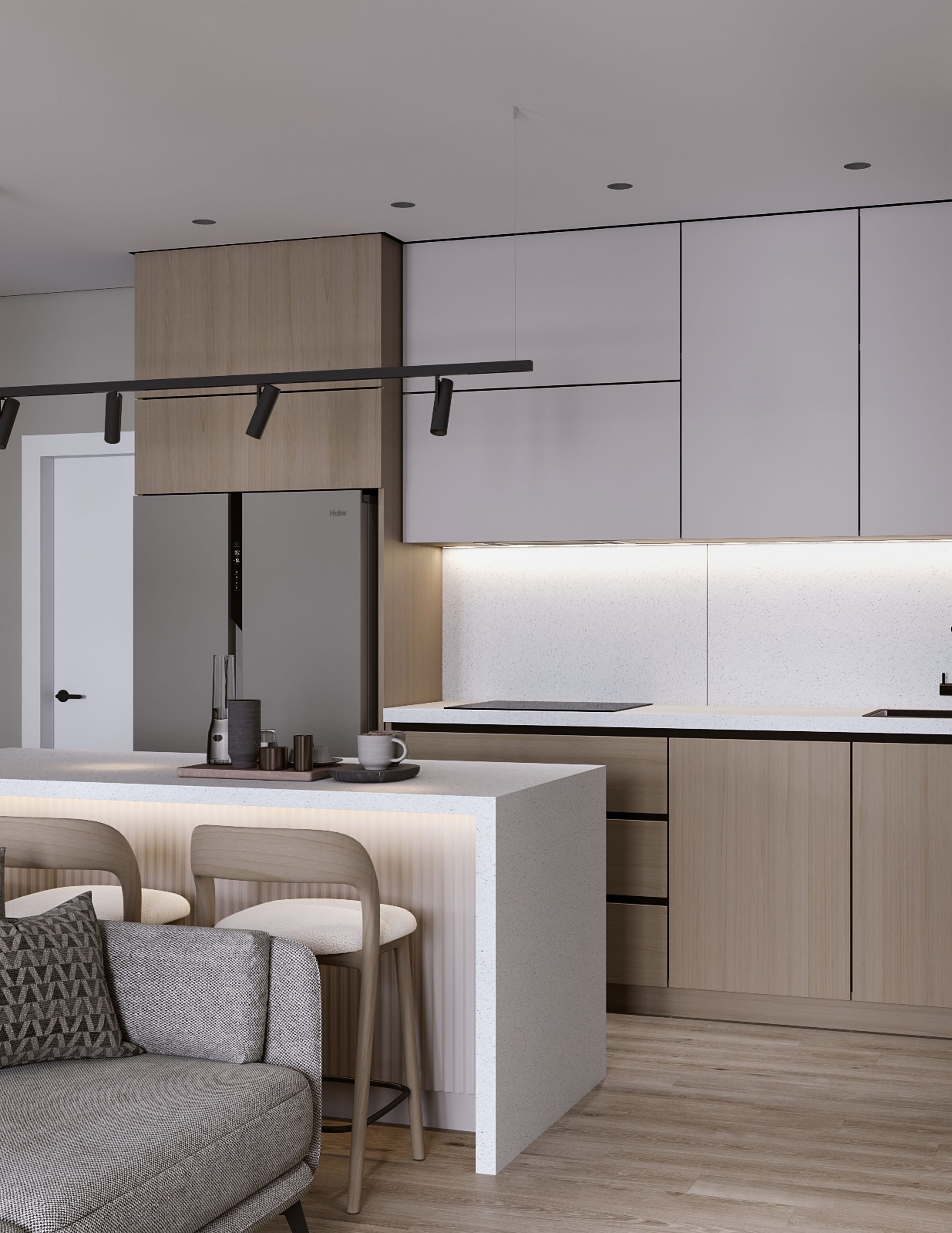Основными задачами в этом проекте являлись планировочное решение с удобным распределением зон, декорирование в современной стилистике и адаптация решений под нужды и пожелания заказчиков.