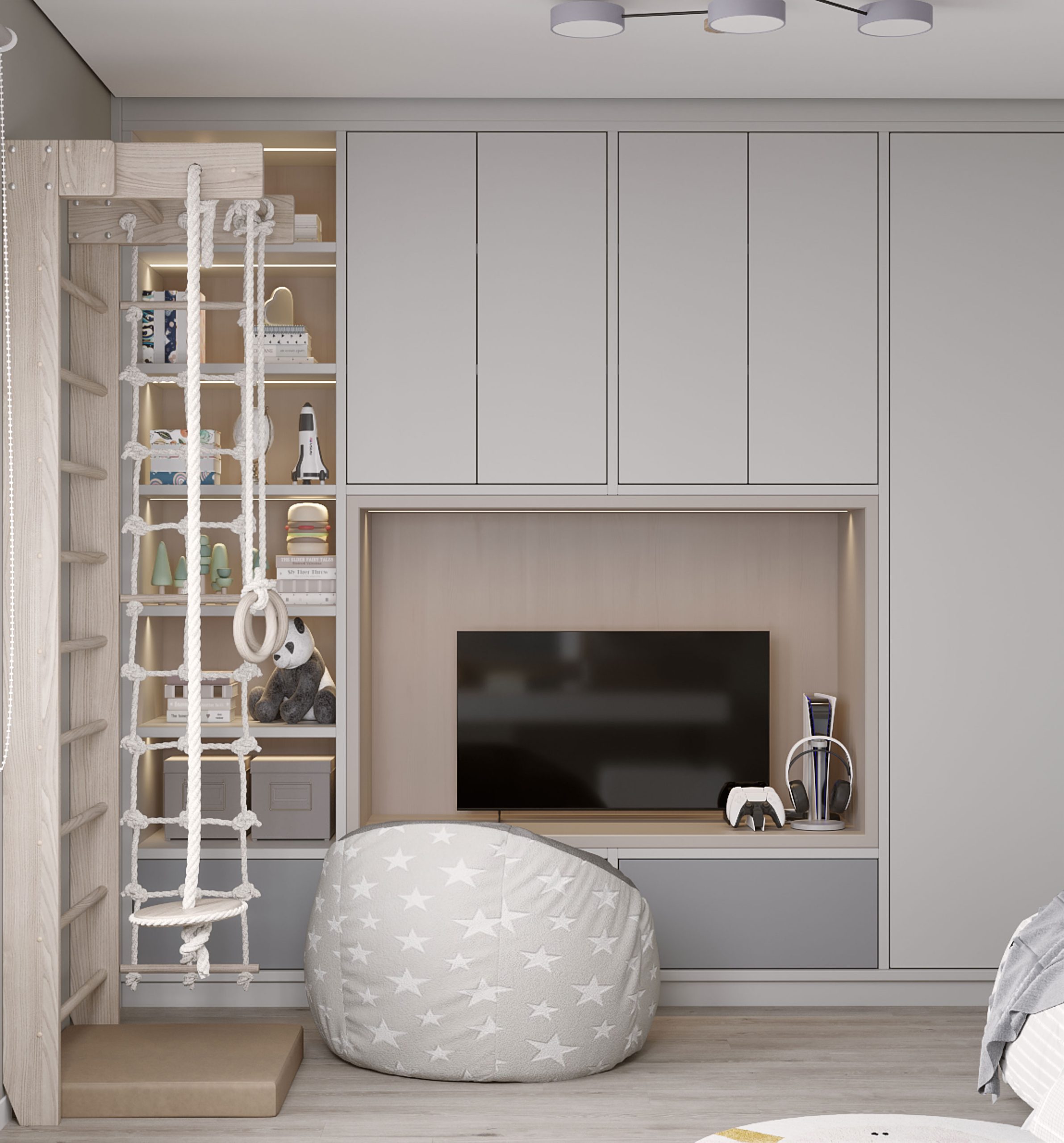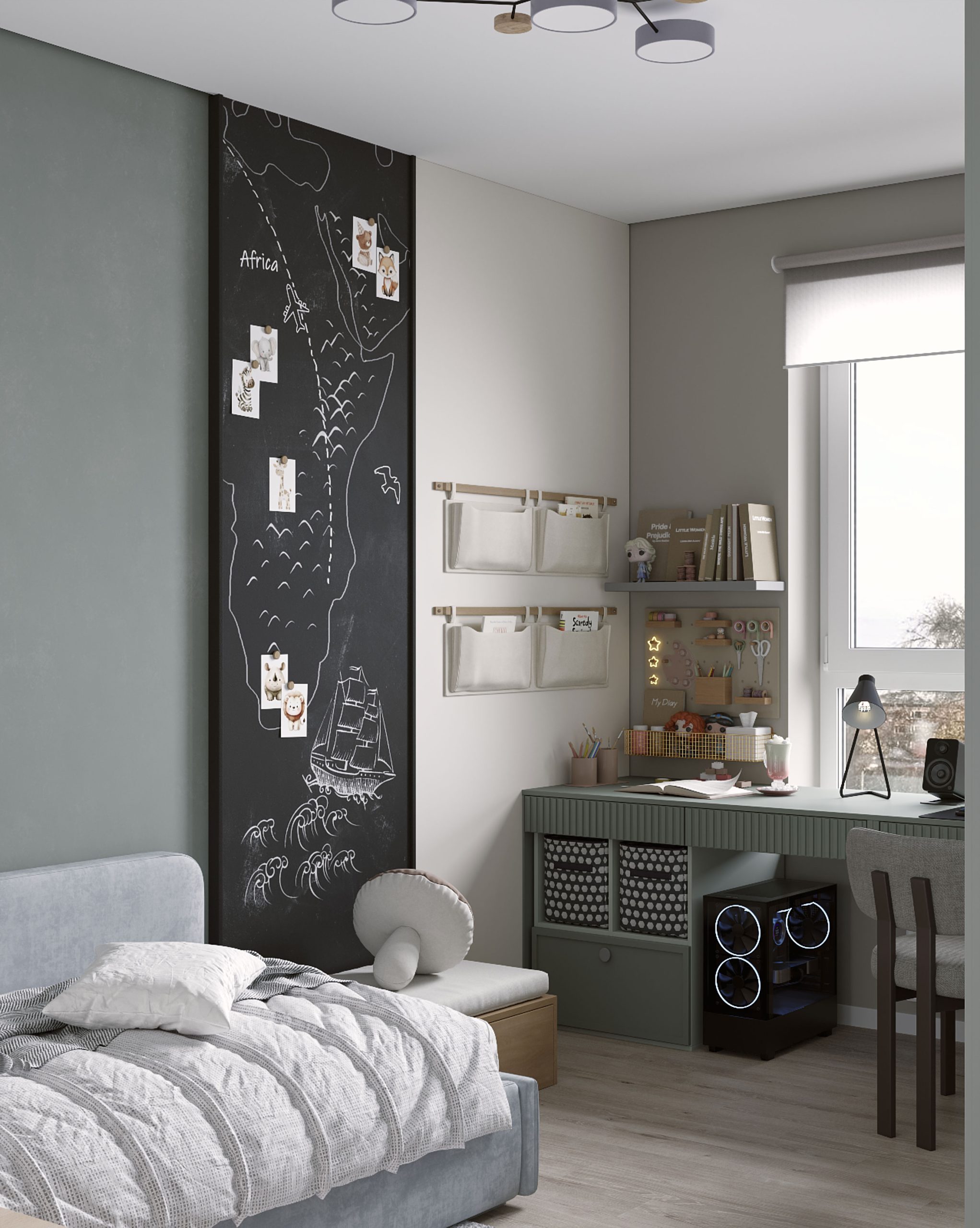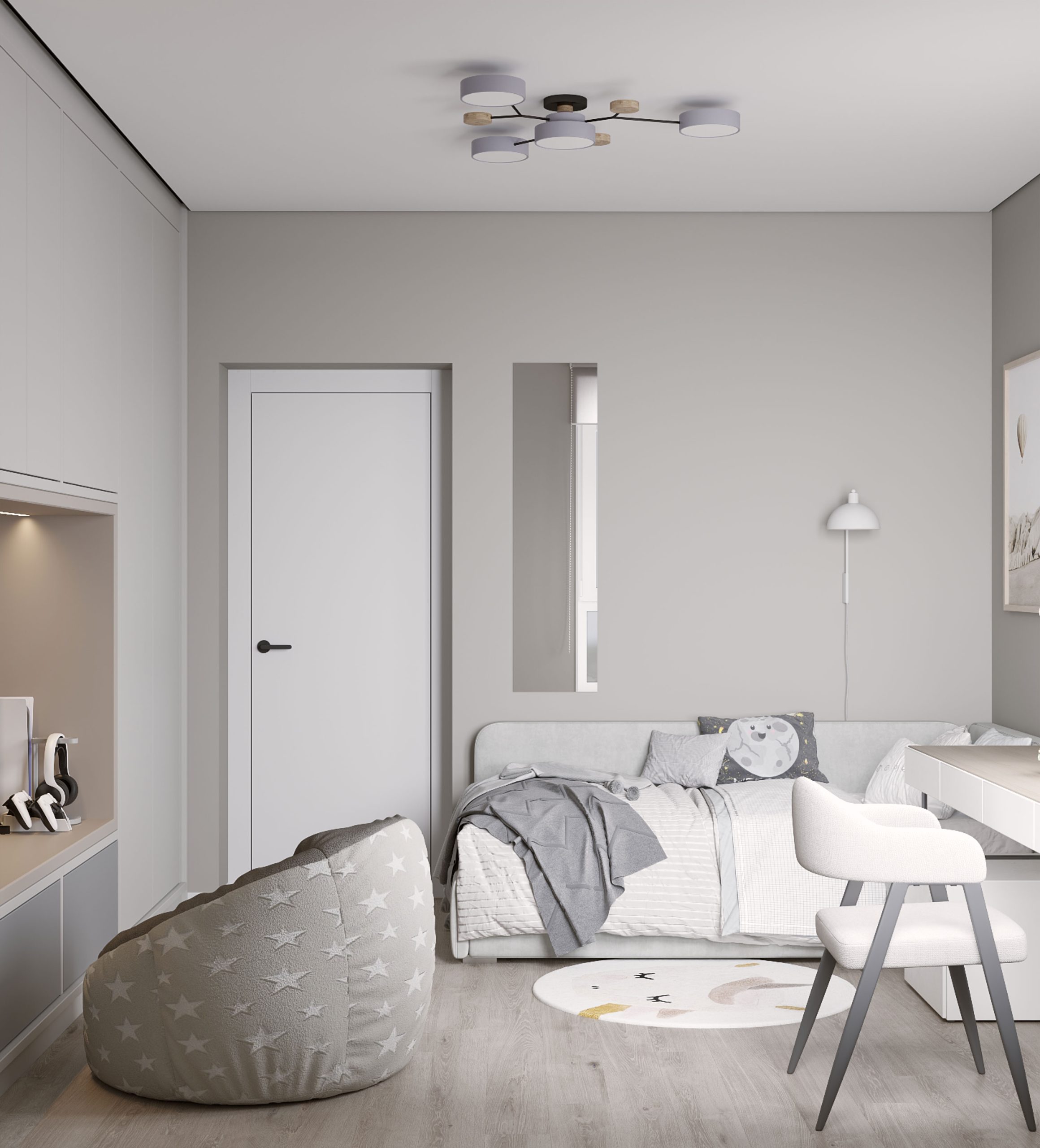 Дизайн-проект квартиры с учетом проживания четырех человек.