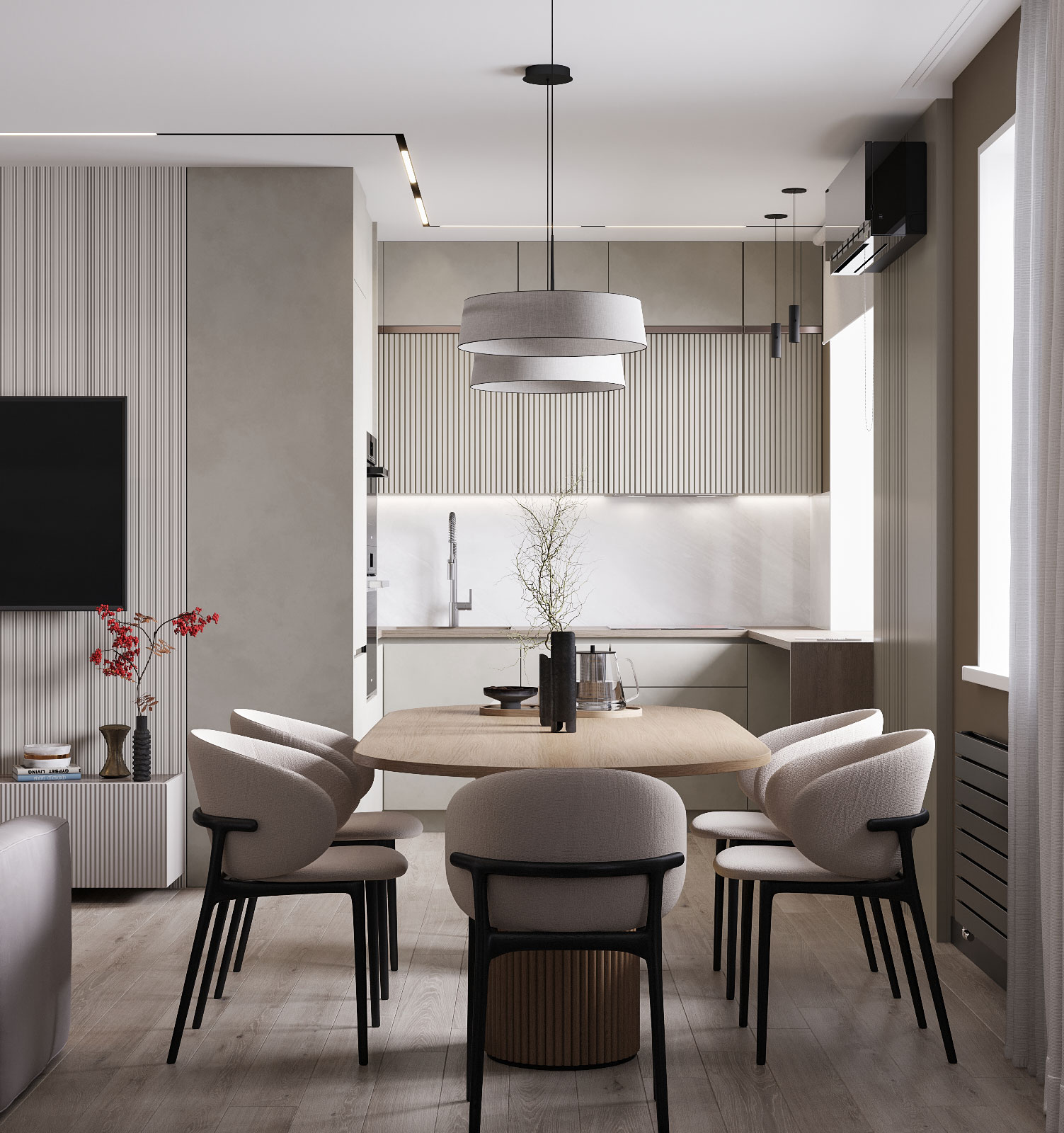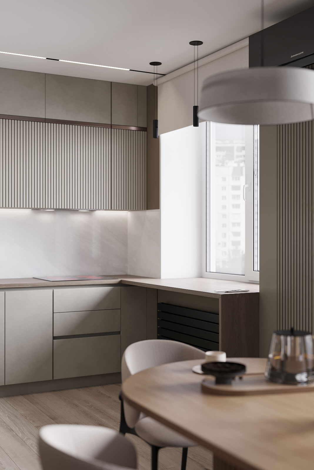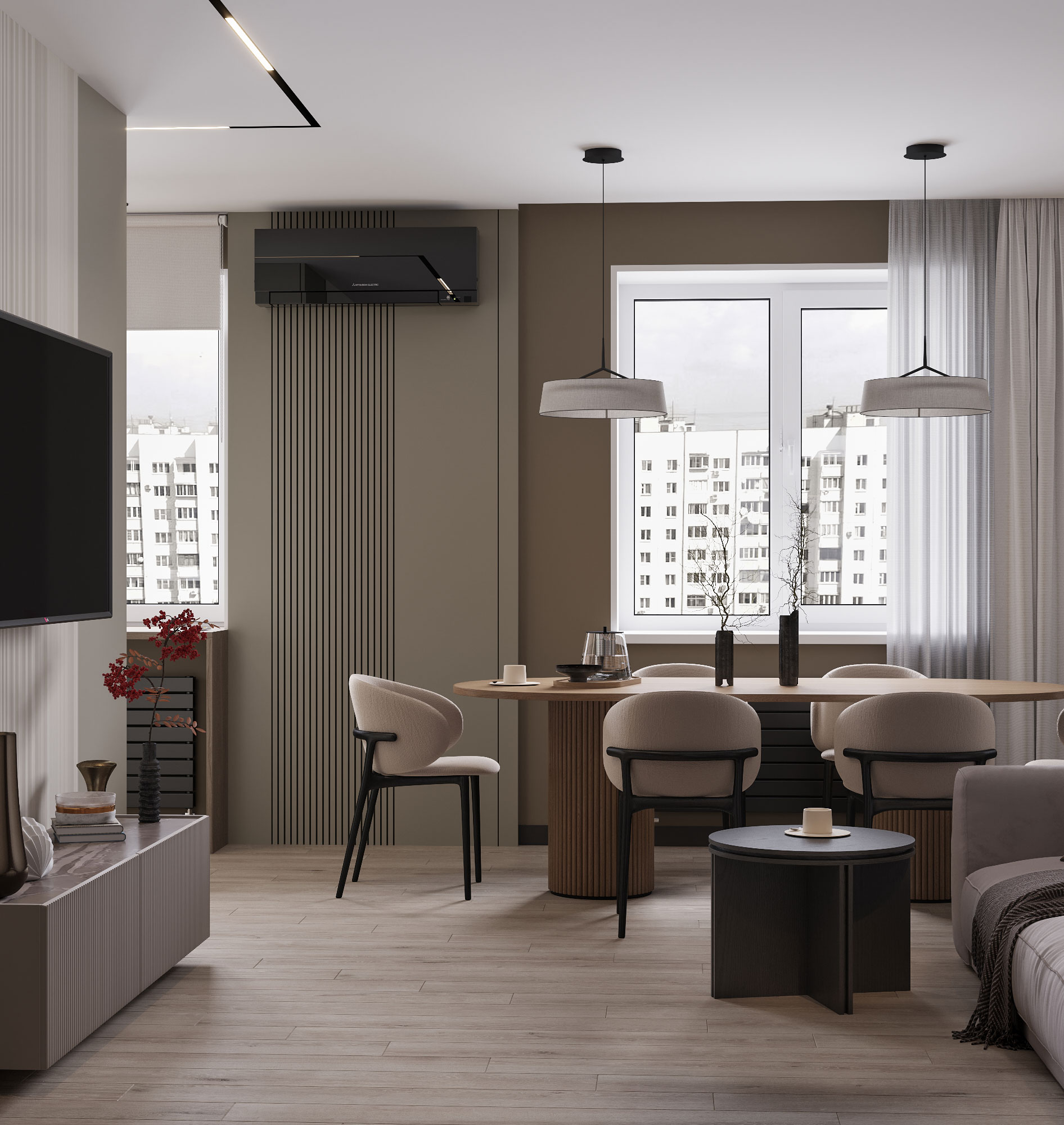 Дизайн в теплых тонах, с использованием декоративных стеновых панелей.