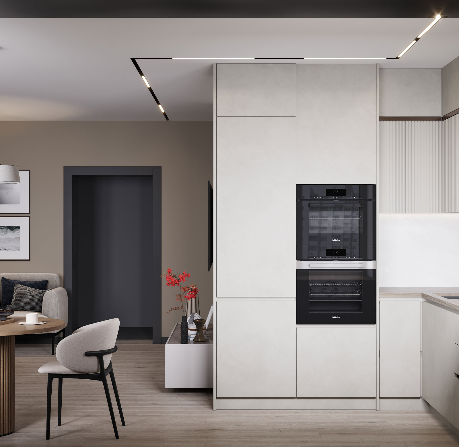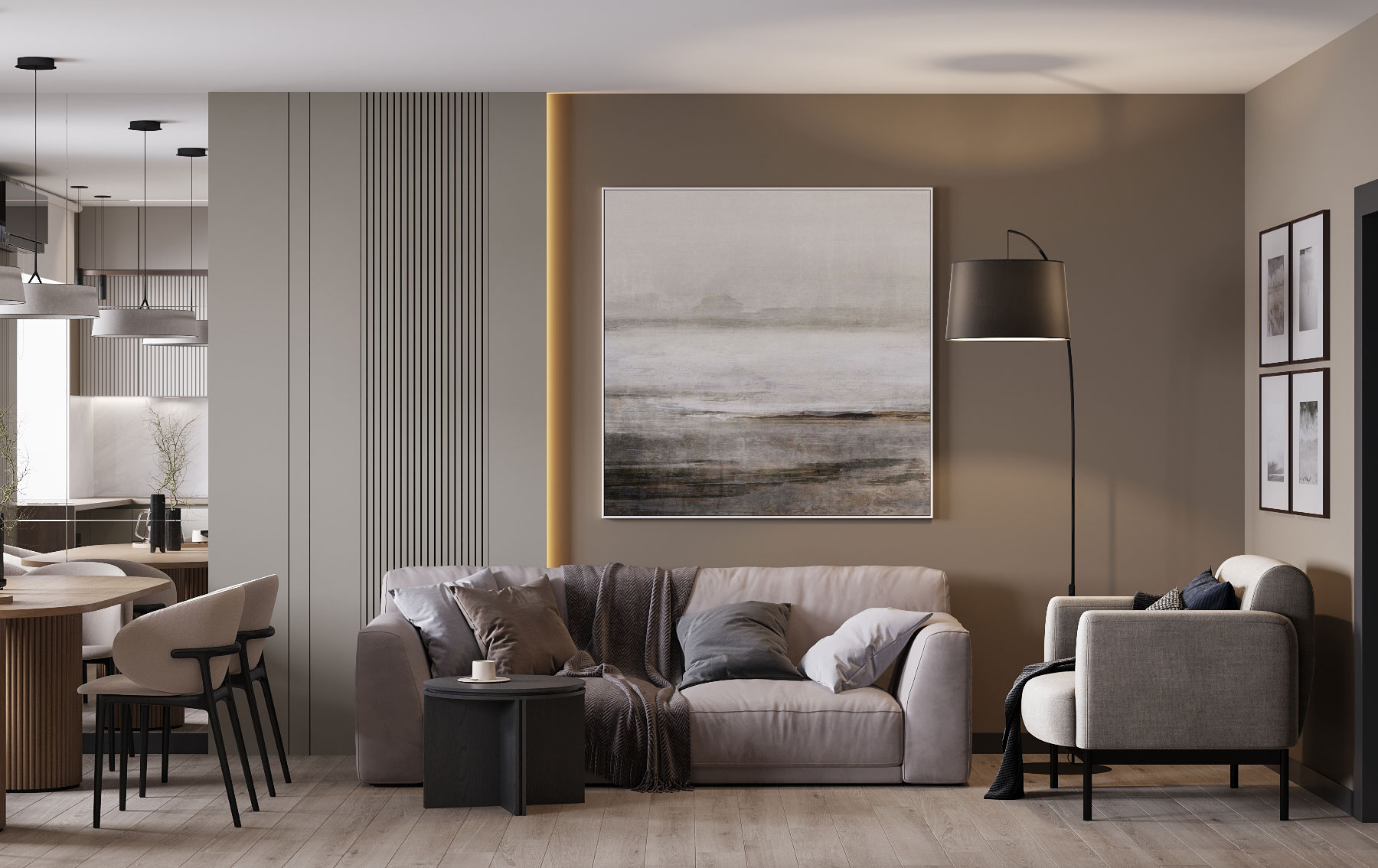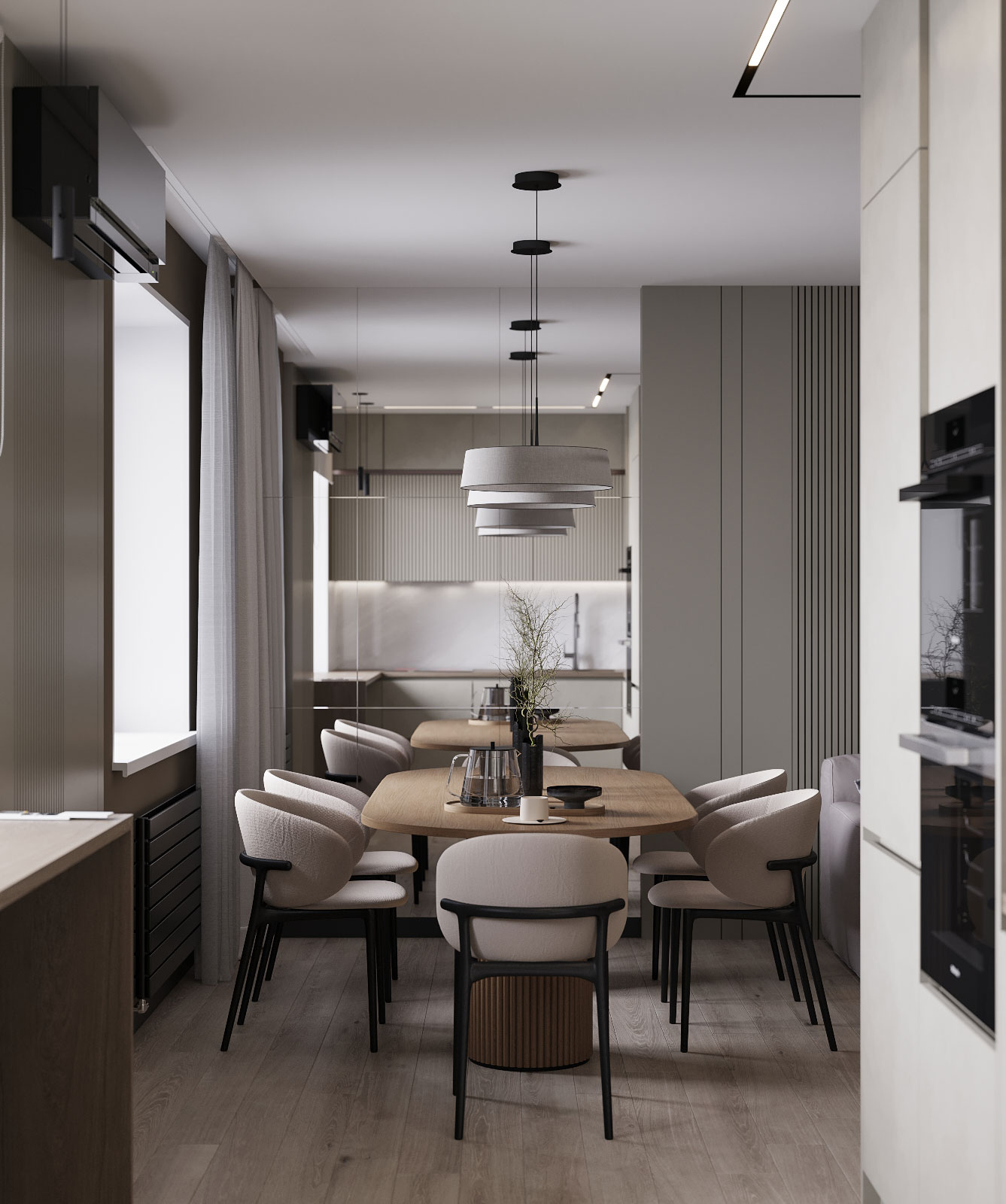 Дизайн в теплых тонах, с использованием декоративных стеновых панелей.